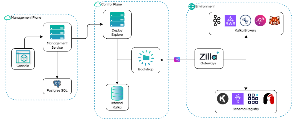The Zilla Platform Architecture is structured around three primary planes: Management Plane, Control Plane, and Data Plane.